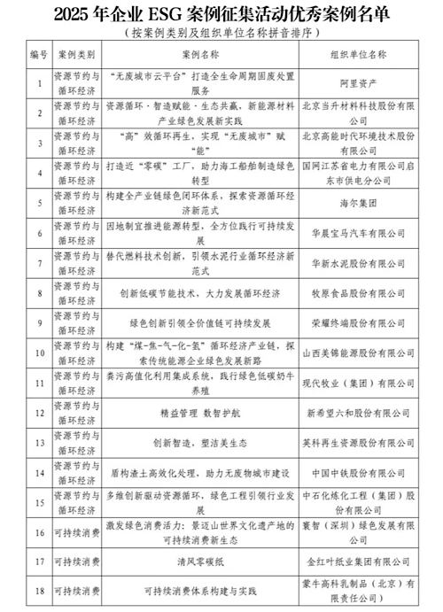 2025年企業(yè)ESG案例征集活動案例公布,聯(lián)想、阿里、無印良品、海爾等企業(yè)案例被收錄