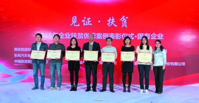 2018年12月5日,《企業(yè)精準(zhǔn)扶貧案例研究》暨《企業(yè)扶貧藍(lán)皮書(2018)》發(fā)布會在北京舉行。東風(fēng)公司扶貧案例入選《企業(yè)扶貧藍(lán)皮書》,獲評“企業(yè)扶貧優(yōu)秀案例獎(jiǎng)”。東風(fēng)公司援藏工作隊(duì)領(lǐng)隊(duì)、西藏昌都市委副秘書長韓永民榮獲“企業(yè)扶貧優(yōu)秀人物”獎(jiǎng)。