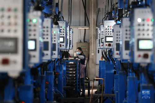 q1月31日,工人在重慶市黔江區(qū)工業(yè)園區(qū)一電子科技公司生產(chǎn)車間加工電子元件。新華社發(fā)(楊敏攝)