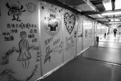 4月14日,中新社記者走進(jìn)武漢雷神山醫(yī)院,拍攝下病房外走廊墻壁上的一幅幅手繪作品。這些作品多是由各地醫(yī)療隊(duì)醫(yī)護(hù)人員手繪而成,既有抗疫的點(diǎn)滴日常,也有滿滿的祝福。武漢雷神山醫(yī)院14日實(shí)現(xiàn)患者“清零”。