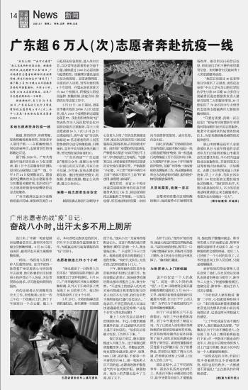 廣東超6萬人(次)志愿者奔赴抗疫一線