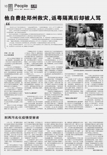 他自費(fèi)赴鄭州救災(zāi),返粵隔離后卻被人罵