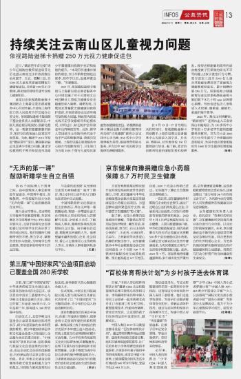 持續(xù)關(guān)注云南山區(qū)兒童視力問題 依視路陸遜梯卡捐贈250萬元視力健康促進包