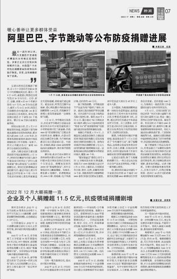 2022年12月大額捐贈一覽:企業(yè)及個人捐贈超11.5億元,抗疫領(lǐng)域捐贈劇增