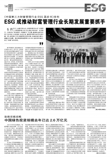ESG成推動(dòng)財(cái)富管理行業(yè)長(zhǎng)期發(fā)展重要抓手