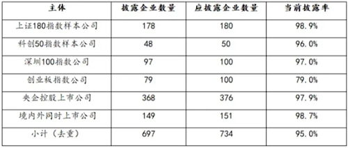 企研行高級(jí)分析師陳登立介紹,根據(jù)國資委的政策、證監(jiān)會(huì)和三大交易所的準(zhǔn)則和指引,央企控股上市公司、境內(nèi)外同時(shí)上市、上證180指數(shù)樣本公司、科創(chuàng)50指數(shù)樣本公司、深圳100指數(shù)公司和創(chuàng)業(yè)板指數(shù)公司屬于強(qiáng)制披露主體,必須在披露季準(zhǔn)時(shí)披露,創(chuàng)業(yè)板指數(shù)樣本公司有21家沒有落實(shí)。從上表中可以看出,強(qiáng)制披露的制度約束機(jī)制發(fā)生的作用,去重之后,“應(yīng)批未批”的企業(yè)為37家,僅占5%。根據(jù)其與37家企業(yè)聯(lián)絡(luò),這些企業(yè)很快也會(huì)披露。