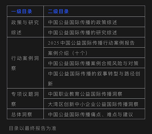 為此,“中國公益國際傳播共建網絡”項目立項《2025中國公益國際傳播發(fā)展報告》課題,依托實踐案例開展深度研究。