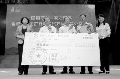茅臺(tái)集團(tuán)董事長(zhǎng)袁仁國(guó)表示,目前距離實(shí)現(xiàn)脫貧目標(biāo)僅有三年時(shí)間,為貫徹落實(shí)黨中央、國(guó)務(wù)院的重大部署,積極參與扶貧攻堅(jiān)戰(zhàn),大力實(shí)施精準(zhǔn)扶貧,推動(dòng)實(shí)現(xiàn)同步小康,茅臺(tái)集團(tuán)與中國(guó)青基會(huì)制定了“國(guó)酒茅臺(tái)·國(guó)之棟梁”希望工程圓夢(mèng)行動(dòng)脫貧攻堅(jiān)三年公益計(jì)劃。未來三年,茅臺(tái)集團(tuán)將每年捐贈(zèng)1億元,3年共,開展“國(guó)酒茅臺(tái)·國(guó)之棟梁——希望工程圓夢(mèng)行動(dòng)”脫貧攻堅(jiān)三年公益計(jì)劃。