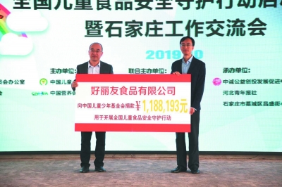啟動儀式上,好麗友向中國兒童少年基金會(以下簡稱“中國兒基會”)捐款118萬余元,用于支持“全國兒童食品安全守護(hù)行動”在河北、河南、廣東、遼寧四省開展科普活動,讓孩子們能夠在各類互動體驗(yàn)中感受到學(xué)習(xí)食品安全知識的樂趣,預(yù)計(jì)將有近10萬名學(xué)童及家長從中受益。
