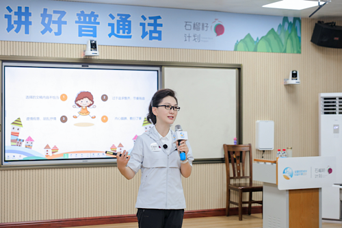 此次活動的主題為“上好體育課,講好普通話”。為此,中央廣播電視總臺總編室播音員主持人管理中心副主任、“石榴籽計劃”發(fā)起人海霞也來到現(xiàn)場,為同學(xué)們帶來了一堂別開生面的普通話課堂。據(jù)悉,“石榴籽計劃”致力于在邊疆地區(qū)、民族地區(qū)、欠發(fā)達(dá)地區(qū)推廣普及普通話,用國家通用語言鞏固脫貧攻堅成果,助力鄉(xiāng)村振興。