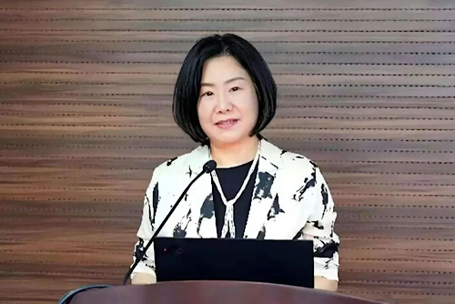 4月25日,李平、廖梅夫婦決定一次性捐贈10億元,支持建設(shè)復(fù)旦大學(xué)學(xué)敏高等研究院。圖為廖梅在復(fù)旦大學(xué)高分子科學(xué)系的活動上