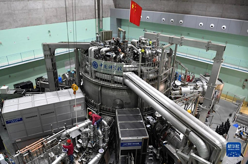 在中科院合肥物質(zhì)科學(xué)研究院,工作人員對(duì)有“人造太陽”之稱的全超導(dǎo)托卡馬克核聚變實(shí)驗(yàn)裝置(EAST)進(jìn)行升級(jí)改造(2021年4月13日攝)。新華社記者 劉軍喜 攝