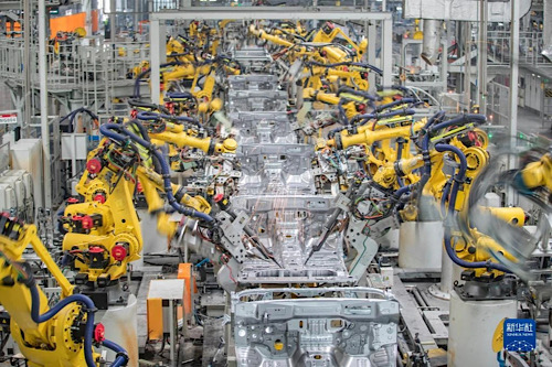 3月1日,在長城汽車重慶永川生產(chǎn)基地焊裝車間,智能化焊接機(jī)器人在進(jìn)行焊接作業(yè)。新華社記者 黃偉 攝
