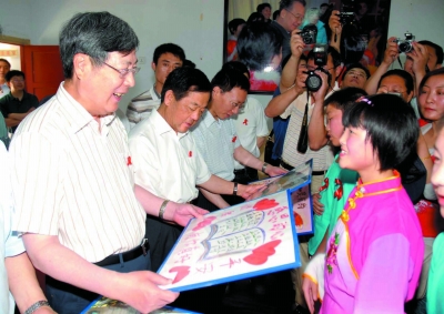 2009年6月12日,黃孟復接受中華紅絲帶家園孩子贈送的禮物