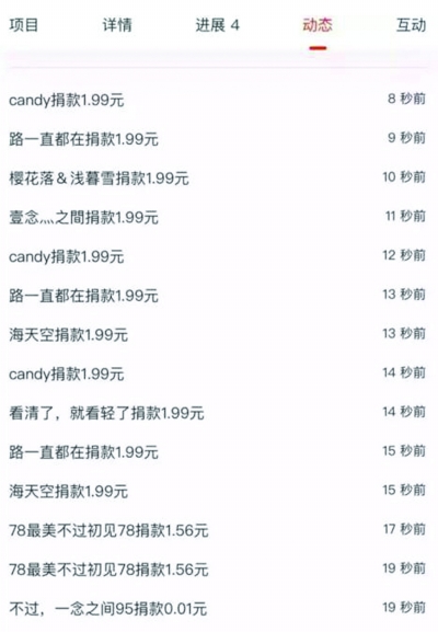 而在記者觀察的短短8分鐘內,該項目的捐贈數(shù)據(jù)就從41297人次、64731.76元上升至42246人次、66512.18元,捐贈人次增加近千,捐贈金額增加近兩千。
