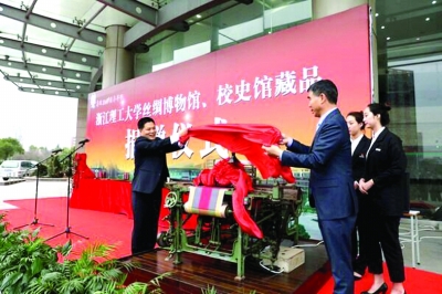 2017年是浙江理工大學(xué)的120周年校慶,除向母校及母校基金會(huì)捐贈(zèng)款項(xiàng)外,不少校友更以多種方式實(shí)現(xiàn)捐贈(zèng)。圖為達(dá)利(絲綢)浙江有限公司董事長(zhǎng)、總裁林平向籌辦中的浙江理工大學(xué)絲綢博物館捐贈(zèng)的上世紀(jì)30年代產(chǎn)于日本的絲織機(jī)
