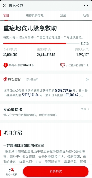 據(jù)德義基金秘書長周家沛介紹,在德義基金今年上線的36個(gè)項(xiàng)目中,重點(diǎn)在推的項(xiàng)目有重癥地貧兒緊急救助、保險(xiǎn)項(xiàng)目、眼科白內(nèi)障項(xiàng)目等等,其中,重癥地貧兒緊急救助是36個(gè)項(xiàng)目中籌款成績最好的項(xiàng)目。該項(xiàng)目是德義跟《深圳晚報(bào)》等機(jī)構(gòu)合作,以此推進(jìn)地中海貧血癥領(lǐng)域的覆蓋。該項(xiàng)目所集的小紅花數(shù)量在騰訊平臺(tái)位居第一位,眾集小紅花使得騰訊配捐倍數(shù)加大。加之是重大疾病類項(xiàng)目,容易獲得公眾的同理心,因此籌款成績喜人。