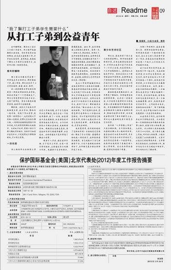 保護(hù)國(guó)際基金會(huì)(美國(guó))北京代表處(2012)年度工作報(bào)告摘要