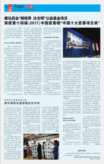 康弘藥業(yè)“朗視界 沐光明”公益基金項目 榮獲第十四屆(2017)中國慈善榜“中國十大慈善項目獎”