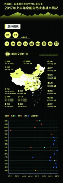 ■ 本報記者 王勇 近日,民政部、國家減災委辦公室發(fā)布了2017年上半年全國自然災害基本情況。經核定,上半年,各類自然災害共造成全國4557.6萬人次受災,204人死亡,83人失蹤,102.2萬人次緊急轉移安置,49.5萬人次需緊急生活救助;3.1萬間房屋倒塌,7.4萬間嚴重損壞,34.5萬間一般損壞;農作物受災面積7091.9千公頃,其中絕收355.6千公頃;直接經濟損失518.9億元??偟目矗瑸那榕c2009-2016年同期均值相比偏輕。 2017年上半年,全國自然災害主要呈現(xiàn)以下特點: 一是受災范圍廣、局部損失嚴重。上半年,全國30個省(自治區(qū)、直轄市)中近60%的縣級行政區(qū)不同程度受到自然災害影響。從時間看,1-5月全國災情明顯偏輕,但6月下旬洪澇和地質災害突發(fā)連發(fā),災情發(fā)展迅速。因災死亡失蹤人口、緊急轉移安置人口、倒塌房屋數(shù)量和直接經濟損失均占上半年災害總損失的50%以上。從區(qū)域看,災情主要集中在西南、華中和華東地區(qū)。西南地區(qū)因災死亡失蹤人數(shù)占全國近5成,華東和華中地區(qū)緊急轉移安置人口、倒塌房屋數(shù)量和直接經濟損失占全國5-9成。總的看,全國災情與近年同期均值相比偏輕,受災人口、死亡失蹤人口、農作物絕收面積、倒損房屋數(shù)量均輕7成以上,均為2009年以來最低值。 二是主汛期南方洪澇地質災害集中爆發(fā)。入汛以來,全國共出現(xiàn)16次降雨過程,尤其是6月下旬,南方大部遭受上半年最強降雨過程,造成浙江、江西、湖南、四川、貴州等12?。ㄗ灾螀^(qū)、直轄市)受災,6月下旬上述地區(qū)洪澇和地質災害災情占上半年全國洪澇和地質災情的6成以上。據(jù)統(tǒng)計,上半年洪澇和地質災害共造成全國24個?。ㄗ灾螀^(qū)、直轄市)和新疆生產建設兵團1766.7萬人次受災,134人死亡,82人失蹤,95.2萬人緊急轉移安置;2.4萬間房屋倒塌,3.5萬間嚴重損壞,15.5萬間一般損壞;直接經濟損失292.8億元。其中,四川茂縣“6·24”特大山體滑坡造成10人死亡,73人失蹤。 三是北方多省遭受風雹災害。上半年,全國共出現(xiàn)29次強對流天氣過程。河北、山西、山東、甘肅、陜西、新疆、兵團等地風雹災情較重。與2009年以來同期相比,風雹造成的損失總體偏輕,受災人口、農作物絕收面積、倒損房屋數(shù)量和直接經濟損失均為最低值。據(jù)統(tǒng)計,風雹災害共造成全國25個?。ㄗ灾螀^(qū)、直轄市)和新疆生產建設兵團1193.2萬人次受災,55人死亡,1人失蹤,5000余間房屋嚴重損壞,6.5萬間一般損壞,直接經濟損失85.3億元。 四是干旱主要影響北方地區(qū)。春季,北方持續(xù)出現(xiàn)溫高少雨天氣,尤其5月份,東北、華北等地降水量較近年同期偏少5成以上,最高氣溫突破5月歷史極值,造成河北、山西、內蒙古、遼寧、吉林、黑龍江、山東等地出現(xiàn)階段性干旱,農作物受災面積3875千公頃,其中絕收面積119.5千公頃,直接經濟損失90.2億元。進入6月份,北方部分旱區(qū)出現(xiàn)明顯降水過程,旱情有所緩解??偟目矗c2009~2016年同期均值相比,農作物受災面積、絕收面積和直接經濟損失偏少4-8成,旱災影響偏輕。 五是地震災害顯著偏輕。上半年,我國大陸地區(qū)共發(fā)生5級以上地震4次,發(fā)生次數(shù)為近5年以來同期最低值,與2009~2016年同期均值相比,死亡失蹤人口、倒塌房屋數(shù)量和直接經濟損失偏輕8成以上,地震災情明顯偏輕。其中,5月11日,新疆塔什庫爾干5.5級地震是上半年發(fā)生在我國大陸地區(qū)震級最高、災情最重的地震,造成塔什庫爾干塔吉克自治縣8人死亡,5300余間房屋倒塌,5.4萬間不同程度損壞,直接經濟損失20億元。此外,3月27日云南漾濞5.1級地震和1月28日四川筠連縣4.9級地震也造成不同程度的損失。 六是臺風和低溫雪災影響較小。上半年,西北太平洋共生成2個臺風,其中,第2號臺風“苗柏”于6月12日23時前后在廣東省深圳市大鵬半島沿海登陸,初次登陸臺風較近年同期偏早15天,損失輕微,造成閩贛粵3省2.5萬人緊急轉移安置,直接經濟損失5.9億元。全國共出現(xiàn)3次較大范圍低溫雨雪天氣過程,給黑龍江、新疆等?。ㄗ灾螀^(qū))交通出行以及內蒙古、甘肅、陜西等地農作物生長造成一定影響??偟目?,與2009~2016年同期均值相比,低溫雪災影響明顯偏輕,農作物受災面積、絕收面積和直接經濟損失偏輕9成左右。 |