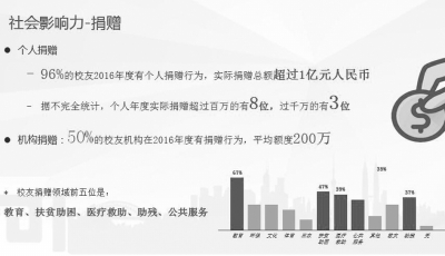 ■ 本報記者 皮磊 9月24日,由深圳國際公益學院(China Global Philanthropy Institute,簡寫為CGPI)、國際公益學院校友會主辦,中國獅子聯(lián)會等機構支持的2017首屆CGPI校友論壇在北京舉行。此次論壇以“共享,共生”為主題,強調“專業(yè)筑善,聯(lián)合行動”,旨在展現(xiàn)由國際公益學院培養(yǎng)出來的慈善領軍者在中國公益專業(yè)化道路上的思考與行動,論壇呼吁慈善行業(yè)通過教育走向專業(yè)化,鼓勵橫向合作,以聯(lián)合行動更加有效地解決社會問題,引領社會文明,推動社會進步。 據了解,國際公益學院校友會成立于2016年10月18日,目前已經成為國內最大的公益領袖社群。在論壇上,國際公益學院助理院長、教務長曾晶發(fā)布了《國際公益學院校友年度報告2017》。該報告針對國際公益學院近300位GPL、EMP、EPL校友進行了數據調研與分析(10天以上在校學習時間,含北京師范大學中國公益研究院EMP/GPL畢業(yè)生)。 報告顯示,在這些當中,研究生學歷以上的超過50%,有海外教育背景的超過20%,有商學院EMBA/MBA背景的超過30%。其中有15年以上工作經驗的超過65%,機構管理層和決策層比例超過90%。 在身份特征方面,有35%的校友擁有多棲身份,校友生態(tài)圈多元跨界,包括包括董事長、總經理、公益機構創(chuàng)始人、理事長、秘書長、知名媒體人、文體明星等,其中有兩名GPL學員——董方軍和游忠惠加入了“捐贈誓言”。 在所關注領域方面,數據顯示校友最為關注的領域為教育、扶貧助困、文化、醫(yī)療救助、公共服務、助殘等,其中有72%的校友都關注教育。 校友所在機構實力也是外界比較關注多的話題。數據顯示,校友所在企業(yè)有20%為上市公司,校友所在公益機構凈資產總額超過 110億元。另外,校友所在機構覆蓋了9個國字頭基金會,2016年度公募top10占六席,非公募top10占五席。 該報告還從捐贈、公益項目及支出、行業(yè)創(chuàng)新/行業(yè)支持/國際化、校友合作以及回饋學院等五個方面對校友的成就和影響力進行了分析。 在個人捐贈方面,96%的校友2016年度有個人捐贈行為,實際捐贈總額超過1億元人民幣;而據不完全統(tǒng)計,個人年度實際捐贈超過百萬的有八位,過千萬的有三位。而在機構捐贈方面,50%的校友機構在2016年度有捐贈行為,平均額度為200萬元。分析顯示,校友捐贈領域排在前五位的是教育、扶貧助困、醫(yī)療救助、助殘、公共服務。 在公益項目及支出方面,校友公益項目數量為855個,覆蓋全國31個省、市、區(qū)及特別行政區(qū)以及海外。據不完全統(tǒng)計,校友所在機構2016年度公益支出超過47億元,年捐贈收入60億元。校友公益項目覆蓋領域前五位是教育、扶貧助困、醫(yī)療救助、環(huán)保、文化。 在行業(yè)創(chuàng)新、行業(yè)支持以及國際化方面,有35%的校友進行過公益金融與社會創(chuàng)新領域的實踐,比如,瑪娜數據科技發(fā)展基金會執(zhí)行委員會會長張維致力于推動公益信用體系建設,捐贈了中國第一支股權捐贈信托;王建邦在北京市永源公益基金會首期捐贈620萬元,發(fā)起成立DAF(Donor Advised Fund捐贈者建議基金)家族傳承的“建邦永續(xù)基金”;64%的校友曾為支持行業(yè)發(fā)展積極貢獻機構和個人資源(如場地、媒體資源、活動代言、志愿服務等);30%的校友在開展公益事業(yè)時有國際性舉措和合作,包括對境外機構捐款、在境外設立公益機構,與境外公益組織合作實施項目等。 在校友合作方面,超過42%的校友進行過校友間合作,比如GPL/EMP 錢軍和多位EMP校友推動的廁紙項目,EMP李克梅和EMP李國武推動的愛飛翔項目,EMP葉大偉和ELP/GPL陳劍光推動的姚基金希望小學籃球季全國集訓和聯(lián)賽等。 在回饋學院方面,有40%的校友曾經為學院提供過捐贈、資源對接或項目合作;88%的校友曾經為學院的品牌及課程影響力進行過推廣;86%的校友愿意對班級活動及校友會事務付出自己的時間與精力;86%的校友為課堂提供過自己的案例,積極參與課堂活動;85%的校友參與每一次的行動計劃討論與實施,積極與講師溝通并給予回應。 除上述內容,該報告還分析了校友在國際公益學院學習期間的收獲,這段學習經歷對其個人提升和機構提升都產生了顯著的積極作用:近40%的校友在學院學習后創(chuàng)立新的公益項目或創(chuàng)辦非營利組織;92%的校友通過學院學習帶動身邊人積極參與公益活動;85.3%的校友認為學院學習可改善與家人的相處,促進家庭和睦;97%的校友認為學院學習有助個人身心健康發(fā)展。 在對機構的影響方面,36%的校友認為學院學習能幫助他們提升籌資能力,從而提升機構籌資額,這其中有機構籌資額最高提升了464.3%;88.2%的校友認為學院學習對其所在的機構品牌、戰(zhàn)略規(guī)劃、運營管理等發(fā)展起到了積極的推動作用,其中 33.8%的校友認為起到了非常積極的作用。 報告顯示,在影響校友學習因素方面,有七個因素比較靠前:課程設置占比為85.51%;海外實踐課程占比為53.62%;國際獎學金占比為44.93%;學院師資力量為43.48%;行動計劃占比44.93%;校友網絡為46.38%;校友活動為40.58%。 該報告最后也分析了學院對于國際公益學院的服務需求以及期待。其中,學員需求最高的三項服務包括資源對接、資訊服務、校友服務;學員最渴望獲得的資訊從高至低排列分別為專業(yè)報告、行業(yè)資訊、活動通知、校友聚會、