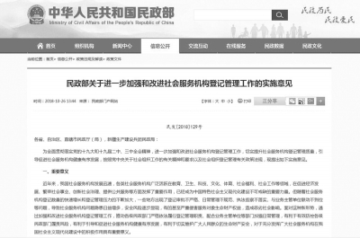 10月26日,民政部對外發(fā)布了《關(guān)于進一步加強和改進社會服務(wù)機構(gòu)登記管理工作的實施意見》。 《實施意見》指出,隨著社會服務(wù)機構(gòu)登記數(shù)量的快速增長和登記管理壓力的不斷加大,一些地方出現(xiàn)了登記審批不嚴格、日常管理不規(guī)范、執(zhí)法監(jiān)察不落實、與業(yè)務(wù)主管單位聯(lián)動不到位等問題,導(dǎo)致社會服務(wù)機構(gòu)問題隱患日益增多,安全風(fēng)險逐步顯現(xiàn),有的甚至嚴重侵害服務(wù)對象生命財產(chǎn)權(quán)益,造成惡劣社會影響。 因此,要加強和改進社會服務(wù)機構(gòu)登記管理工作。在《社會組織登記管理條例》出臺以及民政部關(guān)于直接登記社會組織分類標(biāo)準(zhǔn)和具體辦法下發(fā)之前,各地要從嚴從緊把握社會服務(wù)機構(gòu)直接登記申請,穩(wěn)妥審慎探索。 實施登記重點審查 各級民政部門要依照中共中央辦公廳、國務(wù)院辦公廳《關(guān)于改革社會組織管理制度促進社會組織健康有序發(fā)展的意見》(以下簡稱《意見》)和《民辦非企業(yè)單位登記管理暫行條例》(以下簡稱《暫行條例》)要求,健全登記工作程序,完善登記審查標(biāo)準(zhǔn),切實加強社會服務(wù)機構(gòu)名稱、宗旨、業(yè)務(wù)范圍、注冊資金、活動場所、舉辦者和擬任負責(zé)人的審核把關(guān),嚴格按照《民辦非企業(yè)單位(法人)章程示范文本》要求核準(zhǔn)社會服務(wù)機構(gòu)章程。 對于跨領(lǐng)域、跨行業(yè)以及業(yè)務(wù)范圍寬泛、存在爭議、不易界定的社會服務(wù)機構(gòu),要通過聽取利益相關(guān)方、有關(guān)專家和管理部門意見等方式加強科學(xué)論證,從嚴審核把關(guān)。 對于依照法律、行政法規(guī)規(guī)定,申請登記前須經(jīng)有關(guān)部門審批取得執(zhí)業(yè)許可證書的學(xué)校、醫(yī)療機構(gòu)、博物館等社會服務(wù)機構(gòu),要注重加強與前置審批部門的信息溝通與工作銜接,確保設(shè)立登記、變更登記、注銷登記等工作與前置審批事項變更實現(xiàn)同步聯(lián)動、一體推進。 對于傳統(tǒng)民政業(yè)務(wù)領(lǐng)域的社會服務(wù)機構(gòu),要以更高的標(biāo)準(zhǔn)和更嚴的要求履行登記審查職責(zé),切實防止民政部門業(yè)務(wù)主管社會服務(wù)機構(gòu)登記審查“燈下黑”問題。 穩(wěn)妥審慎探索直接登記工作 在《社會組織登記管理條例》出臺以及民政部關(guān)于直接登記社會組織分類標(biāo)準(zhǔn)和具體辦法下發(fā)之前,各地要從嚴從緊把握社會服務(wù)機構(gòu)直接登記申請,穩(wěn)妥審慎探索。 對于已經(jīng)制定直接登記專門文件但決定暫時停止實施直接登記的地區(qū),要注意做好改革銜接和說明解釋工作,確保社會服務(wù)機構(gòu)登記審查工作平穩(wěn)推進;對于已經(jīng)制定直接登記專門文件并決定繼續(xù)探索直接登記的地區(qū),要嚴格按照《意見》關(guān)于社會服務(wù)機構(gòu)直接登記范圍要求,從嚴審慎受理直接登記申請,不得隨意擴大社會服務(wù)機構(gòu)直接登記范圍;對于尚未制定直接登記專門文件的地區(qū),可以暫時停止受理社會服務(wù)機構(gòu)直接登記申請。 各地在審查直接登記申請過程中,要注意廣泛聽取意見,根據(jù)需要征求有關(guān)部門意見或組織專家進行評估,配合黨建工作機構(gòu)加強對發(fā)起人和擬任負責(zé)人的資格審查和背景核查,確保直接登記社會服務(wù)機構(gòu)實現(xiàn)科學(xué)設(shè)置和有序發(fā)展。 對于直接登記范圍之外的社會服務(wù)機構(gòu),要嚴格按照《暫行條例》要求,繼續(xù)實行登記管理機關(guān)和業(yè)務(wù)主管單位雙重負責(zé)的登記管理體制,推動各業(yè)務(wù)主管單位認真落實《意見》和《暫行條例》規(guī)定的業(yè)務(wù)主管職責(zé)。 抓好重點領(lǐng)域 對于非營利性(公益性)民辦養(yǎng)老機構(gòu),各級民政部門要按照國務(wù)院常務(wù)會關(guān)于取消養(yǎng)老機構(gòu)設(shè)立許可決定的精神,提前研究,認真準(zhǔn)備,周密部署,確保在相關(guān)法律法規(guī)修改后,登記審批工作能夠?qū)崿F(xiàn)同步平穩(wěn)順利過渡。 對于非營利性民辦醫(yī)療機構(gòu),各省級民政部門要按照國家發(fā)展改革委、民政部等9部委《關(guān)于優(yōu)化社會辦醫(yī)療機構(gòu)跨部門審批工作的通知》要求,積極配合發(fā)展改革等部門制定準(zhǔn)入跨部門審批流程和事項清單,督促和指導(dǎo)地方依據(jù)審批流程和事項清單,進一步規(guī)范登記工作程序,加強部門工作銜接,持續(xù)優(yōu)化登記審批工作。 對于非營利性民辦學(xué)校,各級民政部門要認真落實黨中央、國務(wù)院關(guān)于民辦學(xué)校分類登記改革的精神,按照《民辦學(xué)校分類登記實施細則》以及各省級人民政府制定的民辦學(xué)校變更登記類型的具體辦法,配合當(dāng)?shù)亟逃块T積極推進現(xiàn)有民辦學(xué)校分類登記改革工作。繼續(xù)選擇登記為非營利性民辦學(xué)校的,要指導(dǎo)其依法修改章程,明確公益目的和非營利屬性,加強非營利監(jiān)管;選擇登記為營利性學(xué)校的,要積極推動其依法辦理注銷和重新登記手續(xù)。 對于《中華人民共和國民辦教育促進法》施行后新設(shè)立的民辦學(xué)
