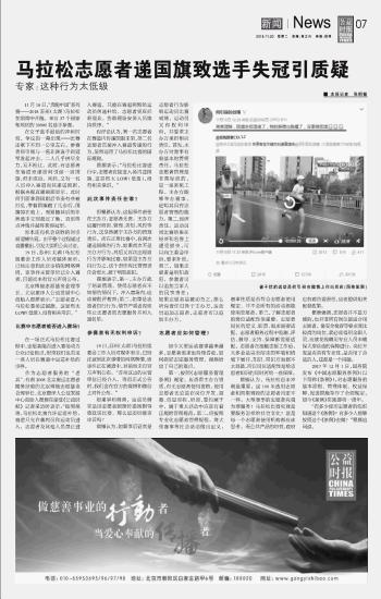 馬拉松志愿者遞國(guó)旗致選手失冠引質(zhì)疑