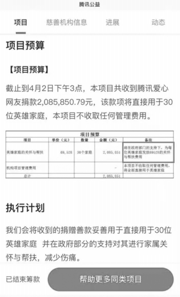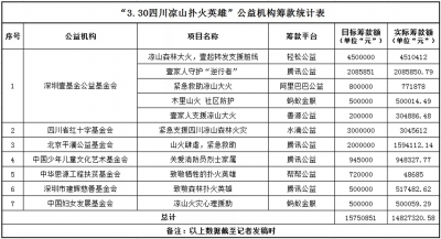 ■ 本報(bào)記者 李慶 張明敏 “3·30涼山森林火災(zāi)”發(fā)生后,多家社會(huì)組織展開積極行動(dòng),在民政部指定的互聯(lián)網(wǎng)公開募捐信息平臺(tái)上發(fā)起籌款為“3·30救火英雄”募捐,善款用于慰問英雄家屬及提升當(dāng)?shù)胤罍p災(zāi)能力。 根據(jù)《公益時(shí)報(bào)》記者統(tǒng)計(jì),截至5月7日17時(shí),針對(duì)“3·30涼山森林火災(zāi)”英雄募捐,共有7家社會(huì)組織(深圳壹基金公益基金會(huì)、四川省紅十字基金會(huì)、北京平瀾公益基金會(huì)、中國少年兒童文化藝術(shù)基金會(huì)、中華思源工程扶貧基金會(huì)、深圳市建輝慈善基金會(huì)、中國婦女發(fā)展基金會(huì))在民政部指定的20家公開募捐信息平臺(tái)中的7家(騰訊公益、善源公益、水滴公益、輕松公益、阿里巴巴公益、螞蟻金服、幫幫公益)平臺(tái)上發(fā)起11個(gè)募款項(xiàng)目。按已籌款結(jié)束和未籌款結(jié)束來計(jì)算,計(jì)劃募款額為15750851元,已募款14827320.58元。 7家機(jī)構(gòu)上線11個(gè)項(xiàng)目 騰訊公益平臺(tái)上共有4家機(jī)構(gòu)發(fā)起籌款項(xiàng)目。 中國少年兒童文化藝術(shù)基金會(huì)發(fā)起的“關(guān)愛消防員烈士家屬”籌款項(xiàng)目,籌款目標(biāo)945000元,已籌款948327.77元,目標(biāo)達(dá)成。 深圳壹基金公益基金會(huì)發(fā)起的“壹家人守護(hù)‘逆行者’”籌款項(xiàng)目,籌款目標(biāo)2085851元,已籌款2085850.79元,目標(biāo)完成99%。 成都市慈善總會(huì)提供公募資質(zhì)支持、深圳市建輝慈善基金會(huì)發(fā)起的“致敬森林撲火英雄”籌款項(xiàng)目,籌款目標(biāo)500000元,已籌款517482.62元,目標(biāo)達(dá)成。 中國社會(huì)福利基金會(huì)提供公募資質(zhì)支持、北京平瀾公益基金會(huì)發(fā)起的“山火肆虐,緊急救助”籌款項(xiàng)目,籌款目標(biāo)2000000元,已籌款1594112.14元,目標(biāo)完成79%。 螞蟻金服平臺(tái)上共有2家機(jī)構(gòu)發(fā)起籌款,分別是深圳壹基金公益基金會(huì)發(fā)起的“木里山火,社區(qū)防護(hù)”項(xiàng)目,籌款目標(biāo)500000元,已籌款500014.49元,目標(biāo)達(dá)成。中國婦女發(fā)展基金會(huì)發(fā)起的“涼山火災(zāi)心理援助”項(xiàng)目,籌款目標(biāo)500000元,已籌款500059.29元,目標(biāo)達(dá)成。 水滴公益平臺(tái)上有1家機(jī)構(gòu)發(fā)起籌款,四川省紅十字基金會(huì)發(fā)起“緊急支援四川涼山森林火災(zāi)”籌款項(xiàng)目,籌款目標(biāo)3000000元,已籌款3045612元,目標(biāo)達(dá)成。 輕松公益平臺(tái)上有1家機(jī)構(gòu)發(fā)起籌款,深圳壹基金公益基金會(huì)發(fā)起“涼山森林大火壹起轉(zhuǎn)發(fā)支援前線”籌款項(xiàng)目,籌款目標(biāo)4500000元,已籌款4510412元,目標(biāo)達(dá)成。 善源公益平臺(tái)上有1家機(jī)構(gòu)發(fā)起籌款,深圳壹基金公益基金會(huì)發(fā)起“壹家人支援涼山大火”項(xiàng)目,籌款目標(biāo)200000元,已籌款304886.48元,目標(biāo)達(dá)成。 幫幫公益平臺(tái)上有1家機(jī)構(gòu)發(fā)起籌款,中華思源工程扶貧基金會(huì)發(fā)起“致敬犧牲的撲火英雄”項(xiàng)目,籌款目標(biāo)720000元,已籌款48685元,目標(biāo)完成6.76%。 阿里巴巴公益平臺(tái)有1家機(jī)構(gòu)發(fā)起募款,深圳壹基金公益基金會(huì)發(fā)起“緊急救助涼山大火”項(xiàng)目,籌款目標(biāo)為800000元,已籌款771878元,目標(biāo)達(dá)成。 善款用途“英雄撫恤”居首 森林大火帶來的不只是生態(tài)損失,更會(huì)對(duì)救援人員、林區(qū)周邊城鎮(zhèn)和人民的生命財(cái)產(chǎn)安全造成嚴(yán)重威脅,防災(zāi)減災(zāi)對(duì)于當(dāng)?shù)厣鐓^(qū)居民來說非常重要。 《公益時(shí)報(bào)》記者通過查閱7家平臺(tái)發(fā)布的11個(gè)募款項(xiàng)目發(fā)現(xiàn),此次籌集的善款主要用于英雄家屬關(guān)懷與幫扶,其次用于當(dāng)?shù)丶爸苓叺貐^(qū)開展防災(zāi)減災(zāi)教育,提升社區(qū)、學(xué)校應(yīng)對(duì)災(zāi)害的能力。 中國少年兒童文化藝術(shù)基金會(huì)為犧牲的30名撲火隊(duì)員給予每名30000元的撫恤金。 深圳壹基金公益基金會(huì)在政府部門的支持下,為30名英雄家庭給予每家69528元的關(guān)懷與幫扶費(fèi)用。 中華思源公益基金會(huì)慰問遇難消防員及地方救火人員家屬,涼山及山西火災(zāi)救災(zāi)遇難英雄36人,每位英雄家屬撫慰金20000元。 深圳市建輝慈善基金會(huì)慰問遇難的消防指戰(zhàn)員及地方撲火人員家屬,慰問20戶遇難撲火家庭,每戶平均5500元。 北京平瀾公益基金會(huì)的善款執(zhí)行方向除了向全國范圍內(nèi)受火災(zāi)影響的民眾救助外,還計(jì)劃用600000元來培育社區(qū)災(zāi)害響應(yīng)人,進(jìn)行防災(zāi)教育;為山火多發(fā)區(qū)內(nèi)的鄉(xiāng)村社區(qū)培育災(zāi)害響應(yīng)人,開展山區(qū)安全防范教育。 30名英雄家屬獲善款平均分配 4月1日21時(shí)40分,四川省紅十字基金會(huì)在民政部指定的20家公開募捐信息平臺(tái)之一的水滴公益上發(fā)起“緊急支援四川涼山森林火災(zāi)”募捐項(xiàng)目,為犧牲的30位英雄家屬募款,募捐額度300萬元。最終,該項(xiàng)目獲捐善款為3040911元。 善款募集存在根本性原則,即需要尊重捐贈(zèng)人意愿。 