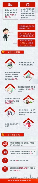 “民政工作關(guān)系民生、連著民心,是社會建設(shè)的兜底性、基礎(chǔ)性工作。”2019年4月2日在北京召開的第十四次全國民政會議,傳達(dá)了習(xí)近平總書記對民政工作作出的重要指示。 認(rèn)真貫徹習(xí)近平總書記重要指示精神,一年來,各級民政部門緊緊圍繞中心、堅決服務(wù)大局,深化改革創(chuàng)新,各項工作取得新進(jìn)展、新成效。 兜底保障能力明顯增強(qiáng) 河北、廣西等創(chuàng)新落實(shí)特殊困難群體“單人戶”低保政策,云南系統(tǒng)規(guī)范完善農(nóng)村低保制度,陜西統(tǒng)籌構(gòu)建“六張保障網(wǎng)”,甘肅、青海等部署開展脫貧攻堅沖刺清零篩查專項行動。加大羅霄山片區(qū)扶貧和定點(diǎn)扶貧縣扶貧力度,江西遂川縣、蓮花縣實(shí)現(xiàn)脫貧摘帽…… 2019年,聚焦打贏精準(zhǔn)脫貧攻堅戰(zhàn),民政兜底保障能力明顯提升—— 出臺加強(qiáng)分散供養(yǎng)特困人員照料服務(wù)、強(qiáng)化臨時救助兜底保障政策;將資金和各項政策措施向“三區(qū)三州”等深度貧困地區(qū)傾斜;深入開展農(nóng)村低保專項整治; 廣泛引導(dǎo)和動員社會組織特別是慈善組織參與脫貧攻堅,全國4.1萬個社會組織開展6.2萬個扶貧項目,投入資金超過600億元; …… 各地民政部門群策群力,發(fā)達(dá)省份加強(qiáng)對口幫扶,貧困地方聚力攻堅,1796萬建檔立卡貧困人口納入農(nóng)村低?;蛱乩藛T救助供養(yǎng),繼續(xù)保持農(nóng)村低保標(biāo)準(zhǔn)動態(tài)達(dá)到或超過國家扶貧標(biāo)準(zhǔn)。 在全力做好脫貧攻堅工作的同時,民政部門穩(wěn)步提升基本民生保障水平,更好滿足廣大困難群眾和特殊群體的基本需求—— 加大對生活困難下崗失業(yè)人員基本生活的保障力度,針對部分食品價格上漲,及時啟動社會救助和保障標(biāo)準(zhǔn)與物價上漲掛鉤聯(lián)動機(jī)制; 建立事實(shí)無人撫養(yǎng)兒童國家保障制度,填補(bǔ)了兒童福利領(lǐng)域制度的空白,大約50萬事實(shí)無人撫養(yǎng)兒童從2020年1月1日起將獲得由政府發(fā)放的基本生活補(bǔ)貼; 聯(lián)合財政部、中國殘聯(lián)建立殘疾人兩項補(bǔ)貼標(biāo)準(zhǔn)動態(tài)調(diào)整機(jī)制,分別涉及1000多萬、1300多萬殘疾人; 加大慈善事業(yè)促進(jìn)力度,截至2019年11月底,全國登記認(rèn)定慈善組織超過7500個,成立慈善信托261筆。 基層社會治理進(jìn)一步夯實(shí) 10月29日下午5點(diǎn),貴州都勻市,幾十個小學(xué)生陸續(xù)放學(xué),來到了思源社區(qū)辦公樓。在閱覽室里,都勻市十三小學(xué)二年級一班的彭興寶拿出作業(yè)本,寫了一會兒,“小黑甲”指出了他的一處錯誤。 “穿‘小黑甲’的都是‘四點(diǎn)半課堂’的社工?!痹诙紕蚴忻裾种С窒拢?4名社工來到社區(qū),承擔(dān)了課外輔導(dǎo)老師的角色。 夯基礎(chǔ),強(qiáng)基層,是近年來民政工作的一項重點(diǎn)。 2019年,民政部門強(qiáng)化黨領(lǐng)導(dǎo)基層群眾自治和社會組織管理,基層社會治理進(jìn)一步夯實(shí)—— 實(shí)施城鄉(xiāng)社區(qū)服務(wù)體系建設(shè)規(guī)劃,加快發(fā)展社區(qū)生活性服務(wù),截至2019年11月底,全國城鄉(xiāng)社區(qū)綜合服務(wù)設(shè)施覆蓋率分別達(dá)到78.6%和46.1%; 強(qiáng)化社會組織管理和監(jiān)督,出臺加強(qiáng)社會組織政治建設(shè)、規(guī)范行業(yè)協(xié)會商會涉企收費(fèi)等政策規(guī)定,全面推開行業(yè)協(xié)會商會脫鉤改革,常態(tài)化公開社會組織違法失信名單信息; 社工人才隊伍和志愿者隊伍建設(shè)取得新進(jìn)展,舉辦首次高級社會工作師考試,志愿服務(wù)隊伍持續(xù)壯大,截至12月20日,全國注冊志愿者逾1.39億,志愿服務(wù)18億小時; …… 行政區(qū)劃調(diào)整和地名清理規(guī)范,也是社會各界尤其是基層群眾關(guān)注的一項重要工作。 2019年,民政部門報請國務(wù)院批準(zhǔn)縣級以上行政區(qū)劃調(diào)整事項20件,優(yōu)化8個大中城市市轄區(qū)規(guī)模結(jié)構(gòu),新增12個中小城市,探索特大鎮(zhèn)設(shè)市模式,建成并上線了中國·國家地名信息庫;聯(lián)合舉辦《中國地名大會》;完成14條省界聯(lián)檢和3條省界界樁更換。 基本社會服務(wù)水平更大幅度提升 “婚姻登記的效率那叫一個‘十分快’?!苯衲?月14日,在廣州市白云區(qū)民政局婚姻登記處的服務(wù)大廳,王佳和妻子手捧大紅色的結(jié)婚證,幸福滿滿。 “早就想到今天會人山人海,以為會排很長時間的隊,真想不到會這么快,還不用花一分錢?!蓖跫验_心地說。 “全城通辦”、網(wǎng)上預(yù)約讓婚姻登記“快”了,取消婚姻登記費(fèi)則讓結(jié)婚成本“降”了。這些變化,得益于民政部門在婚姻登記服務(wù)方面的新舉措。 2019年,民政部門著力打通難點(diǎn)堵點(diǎn),提升基本社會服務(wù)水平—— 婚姻檔案的信息化工作基本完成,加強(qiáng)涉外婚姻管理,持續(xù)提高婚姻登記規(guī)范化水平; 牽頭建立養(yǎng)老服務(wù)部際聯(lián)席會議機(jī)制,取消養(yǎng)老機(jī)構(gòu)設(shè)立許可,規(guī)范備案管理,深化居家社區(qū)養(yǎng)老服務(wù)改革試點(diǎn),推進(jìn)解決大城市養(yǎng)老難問題,持續(xù)推進(jìn)養(yǎng)老院服務(wù)質(zhì)量專項行動; 聯(lián)合11個部門開展違法違規(guī)私建“住宅