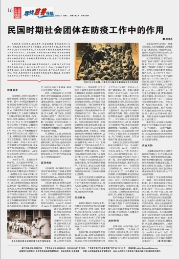民國(guó)時(shí)期社會(huì)團(tuán)體在防疫工作中的作用