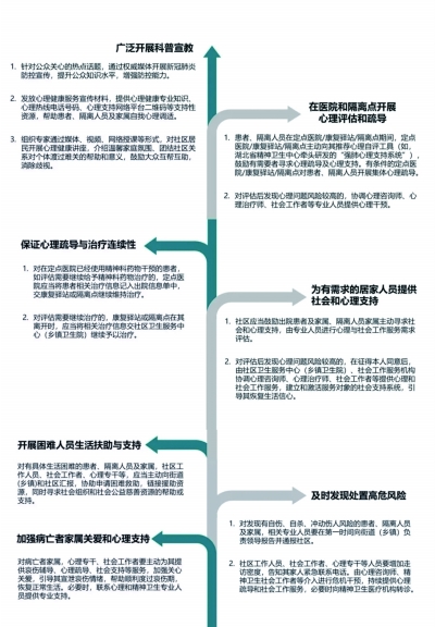 ■ 本報記者 王勇 近日,為做好新冠肺炎患者、隔離人員及家屬心理疏導(dǎo)和社會工作服務(wù),促進患者身體與心理同步康復(fù),維護隔離人員、家屬心理健康,營造相互關(guān)懷的社會環(huán)境,國家衛(wèi)生健康委、民政部制定了《新冠肺炎患者、隔離人員及家屬心理疏導(dǎo)和社會工作服務(wù)方案》。 《方案》明確了新冠肺炎患者、隔離人員及家屬心理疏導(dǎo)和社會工作服務(wù)工作的目標: 第一,開展新冠肺炎防控宣傳和健康教育,提升群眾防控知識水平,增強防護技能,減輕因認知不足所致的恐懼,減少、消除對患者、隔離人員及家屬的歧視與排斥等行為。 第二,以互聯(lián)網(wǎng)絡(luò)平臺為基礎(chǔ),推進互聯(lián)網(wǎng)+社會心理服務(wù),為患者、隔離人員及家屬提供線上心理支持和服務(wù),增強自我心理調(diào)適能力,幫助有需求的服務(wù)對象渡過困難期,恢復(fù)社會功能。 第三,以社區(qū)為主要陣地,建立心理疏導(dǎo)和社會工作服務(wù)網(wǎng)絡(luò),提供情緒引導(dǎo)、心理輔導(dǎo)、資源鏈接、困難紓解、社會支持網(wǎng)絡(luò)修復(fù)等服務(wù),改善社區(qū)環(huán)境,恢復(fù)社區(qū)秩序,推動基層社區(qū)治理,營造健康向上的社區(qū)氛圍,促進社會穩(wěn)定。 組建專業(yè)隊伍 《方案》明確提出,受疫情影響較大的地方,各區(qū)縣防疫指揮部要成立新冠肺炎患者、隔離人員及家屬心理疏導(dǎo)和社會工作服務(wù)領(lǐng)導(dǎo)小組,衛(wèi)生健康、民政等部門分工負責,各街道(鄉(xiāng)鎮(zhèn))明確1名領(lǐng)導(dǎo)負責轄區(qū)心理疏導(dǎo)和社會工作,指定專人統(tǒng)籌協(xié)調(diào)心理疏導(dǎo)和社會工作服務(wù)。 各街道(鄉(xiāng)鎮(zhèn))根據(jù)受疫情影響情況,在社區(qū)設(shè)置心理咨詢室或社會工作室,配備1-2名專職或兼職心理咨詢師或社會工作者;在社區(qū)衛(wèi)生服務(wù)中心(鄉(xiāng)鎮(zhèn)衛(wèi)生院)設(shè)置心理專干;在街道(鄉(xiāng)鎮(zhèn))設(shè)置社會工作站,配備1-2名專職或兼職社會工作者,負責轄區(qū)群眾社會心理健康工作。 有條件的,可建立由社區(qū)工作人員、社會工作者、志愿者、心理咨詢師、心理治療師、精神科醫(yī)師等組成的社區(qū)心理疏導(dǎo)和社會工作服務(wù)隊,采取社區(qū)、社會工作者、社區(qū)志愿者、社區(qū)社會組織、社區(qū)公益慈善資源、心理服務(wù)專業(yè)力量聯(lián)動服務(wù)方式開展工作。 《方案》要求建立對口指導(dǎo)機制。各地按照已有精神衛(wèi)生服務(wù)技術(shù)指導(dǎo)機制,由各社區(qū)衛(wèi)生服務(wù)中心(鄉(xiāng)鎮(zhèn)衛(wèi)生院)對口聯(lián)系的上級精神衛(wèi)生醫(yī)療機構(gòu)派精神科醫(yī)師、心理治療師,提供技術(shù)指導(dǎo)和幫助。 要提供線下和轉(zhuǎn)介服務(wù)。根據(jù)出院患者及家屬、隔離人員家屬需求,社區(qū)工作人員、心理專干可聯(lián)系社會工作者、心理咨詢師、心理治療師進社區(qū)提供心理疏導(dǎo)和社會工作服務(wù)。發(fā)現(xiàn)出院患者及家屬、隔離人員家屬可能有精神衛(wèi)生問題時,心理咨詢師、精神衛(wèi)生社會工作者等應(yīng)當向?qū)诰裥l(wèi)生醫(yī)療機構(gòu)轉(zhuǎn)介,由精神科醫(yī)生提供精神醫(yī)學診療服務(wù)。 要開展人員培訓和督導(dǎo)。上級精神衛(wèi)生醫(yī)療機構(gòu)和社會工作行業(yè)組織應(yīng)當派具備心理援助技術(shù)能力的精神科醫(yī)師、心理治療師、社會工作師對社區(qū)工作人員、志愿者、心理專干等人員開展精神衛(wèi)生知識培訓,分別對街道和社區(qū)工作提供技術(shù)指導(dǎo)和專業(yè)督導(dǎo)。 《方案》明確要求在提供心理疏導(dǎo)和社會工作服務(wù)時要遵循以下原則: 一是統(tǒng)一領(lǐng)導(dǎo)、團隊協(xié)作、分工負責。所有工作須在本專項工作領(lǐng)導(dǎo)小組的統(tǒng)一領(lǐng)導(dǎo)下組織進行,各類人員實行團隊協(xié)作,明確成員分工與配合。未經(jīng)允許個人不得擅自開展任何形式的心理疏導(dǎo)和社會工作服務(wù)活動。 二是嚴守心理衛(wèi)生和社會工作服務(wù)倫理原則、保密要求。對患者、隔離人員及家屬的個人和家庭隱私包括個人信息、生活軌跡、家庭情況等嚴格保密;設(shè)專人負責服務(wù)對象檔案管理并簽署保密協(xié)定。 三是分類分級。結(jié)合各社區(qū)實際狀況,采用分類、分級處理。對不同社區(qū)、不同年齡段、不同人群、具有不同需求的服務(wù)對象進行分類干預(yù)。 七項具體措施 《方案》提出了開展心理疏導(dǎo)和社會工作服務(wù)的七項具體措施: 一是廣泛開展科普宣教。針對公眾關(guān)心的熱點話題,通過權(quán)威媒體開展新冠肺炎防控宣傳,提升公眾知識水平,增強防控能力。發(fā)放心理健康服務(wù)宣傳材料,提供心理健康專業(yè)知識、心理熱線電話號碼、心理支持網(wǎng)絡(luò)平臺二維碼等支持性資源,幫助患者、隔離人員及家屬自我心理調(diào)適。組織專家通過媒體、視頻、網(wǎng)絡(luò)授課等形式,對社區(qū)居民開展心理健康講座,介紹溫馨家庭氛圍、團結(jié)社區(qū)關(guān)系對個體渡過難關(guān)的幫助和意義,鼓勵大眾互幫互助,消除歧視。 二是在醫(yī)院和隔離點開展心理評估和疏導(dǎo)?;颊?、隔離