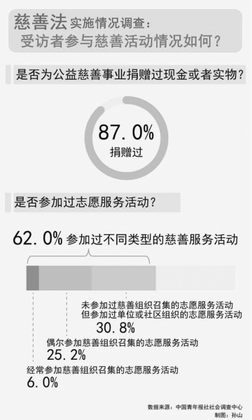 近日,為更好地了解《中華人民共和國慈善法》的實施情況,中國青年報社社會調(diào)查中心受全國人大有關(guān)機構(gòu)委托,就慈善法中與公眾關(guān)系密切的相關(guān)內(nèi)容進行了問卷調(diào)查。這項調(diào)查在中國青年報社全媒體平臺展開,調(diào)查從2020年8月9日19時40開始,至2020年8月19日22時截止。共回收有效樣本5039個。 調(diào)查顯示,87.0%的受訪者表示,曾為公益慈善事業(yè)捐贈過現(xiàn)金或?qū)嵨铩?2.0%的受訪者參加過不同類型的慈善服務(wù)活動。受訪者對于慈善法的知曉程度還有待提升,83.0%的受訪者表示對慈善法不太了解或完全不了解。 87.0%受訪者曾為公益慈善事業(yè)捐贈過現(xiàn)金或?qū)嵨?/p> 10月15日,十三屆全國人大常委會第二十二次會議聽取了全國人大常委會執(zhí)法檢查組關(guān)于檢查《慈善法》實施情況的報告。報告指出,慈善法的實施促進了公眾慈善意識普及。 在本次調(diào)查中,87.0%的受訪者表示,曾為公益慈善事業(yè)捐贈過現(xiàn)金或?qū)嵨铩?/p> 62.0%的受訪者參加過不同類型的慈善服務(wù)活動。其中,6.0%的受訪者經(jīng)常參加公益慈善組織召集的志愿服務(wù)活動,25.2%的受訪者偶爾參加,30.8%的受訪者雖未參加過公益慈善組織召集的志愿服務(wù)活動,但參加過單位或者社區(qū)組織的志愿服務(wù)活動。 一名來自湖南的90后留言,自己在大學期間參與了公益組織的活動,非常認同做慈善是一件好事。 雖然公眾的慈善意識在提高,但公眾對慈善法的認知和了解還有待進一步的提升。 調(diào)查顯示,65.3%的受訪者不知道慈善法,83.0%的受訪者表示對慈善法不太了解或者完全不了解。交互分析發(fā)現(xiàn),00后受訪者知道慈善法的比例更高,博士受訪者了解慈善法的比例更高。 一名來自江蘇的70后留言,自己雖然知道有慈善法這部法律,但并不太了解內(nèi)容,覺得目前法律宣傳還不夠到位。 “感覺沒有很好地利用互聯(lián)網(wǎng)做宣傳。”一名來自天津的90后覺得慈善法的普及宣傳還不夠,她希望可以多利用互聯(lián)網(wǎng)渠道,讓大家以更簡單的方式參與其中。 “慈善法的知曉度不高,可能與這部法律和普通大眾日常生活聯(lián)系沒那么緊密有關(guān)?!北本┐髮W社會學博士、深圳大學管理學院助理教授章高榮認為,提高慈善法的普及可以從兩個方面來進行,對于相關(guān)專業(yè)從業(yè)人員而言,可以通過加強培訓來實現(xiàn)。對于公眾來說,可以結(jié)合一些特殊時點來進行普法宣傳?!叭绻粋€普通人只是偶爾捐個款,可能不太會特別關(guān)注這部法律。如果可以提升慈善行業(yè)在社會中的作用,增強與個人生活的相關(guān)性,那么隨著慈善組織的發(fā)展,公眾越來越多地參與到慈善中,他們對慈善法的了解也會增強”。 如何應(yīng)對互聯(lián)網(wǎng)衍生的慈善新挑戰(zhàn)? 全國人大常委會執(zhí)法檢查報告表示,慈善法對以網(wǎng)絡(luò)為平臺和媒介進行的募捐、捐贈和宣傳進行了規(guī)范,主要是將網(wǎng)絡(luò)與廣播、電視、報刊、電信并列作為一種信息傳輸渠道,沒有將其作為一種支付場所和生活場景,對新問題的規(guī)范不足。 2016年以來民政部先后兩批遴選指定共20家互聯(lián)網(wǎng)募捐信息平臺為慈善組織提供募捐信息發(fā)布服務(wù)。網(wǎng)絡(luò)籌款已成為公開募捐的主要途徑。有慈善組織反映,互聯(lián)網(wǎng)公開募捐信息平臺對慈善項目的執(zhí)行成本、管理費用等要求比法律法規(guī)更加嚴格,限制了募捐渠道;個別互聯(lián)網(wǎng)平臺收取委托費用且比例過高,影響了實際籌款效果。 互聯(lián)網(wǎng)應(yīng)用的普及,為公眾參與慈善提供了更為方便、快捷的渠道,但也出現(xiàn)了許多新挑戰(zhàn)。在調(diào)查中,不少受訪者留言提及了互聯(lián)網(wǎng)慈善的相關(guān)問題。 一名來自江蘇的90后留言,她覺得雖然互聯(lián)網(wǎng)提高了慈善的效率,但如果信息透明度降低,則會影響慈善的公信力。 一名來自河北省的90后感覺,在互聯(lián)網(wǎng)平臺上的捐款,存在著去向不明的問題。 山西省一名90后建議,完善慈善法對互聯(lián)網(wǎng)公益慈善事業(yè)的指導(dǎo)作用。 一名來自廣東的90后希望,可以對互聯(lián)網(wǎng)的公益項目有更加嚴格的審核、事后跟進和反饋機制。 目前互聯(lián)網(wǎng)平臺上的個人求助不屬于慈善募捐、不在慈善法規(guī)制范圍,但是互聯(lián)網(wǎng)平臺個人求助方面存在的問題,也影響了公眾對于慈善事業(yè)的評價。 對此,章高榮表示,可以通過互聯(lián)網(wǎng)相關(guān)的其他法律法規(guī)來進行規(guī)范?!皞€人募款行為,本身不屬于慈善法定義的內(nèi)容。但現(xiàn)在網(wǎng)絡(luò)平臺上個人募款非常普遍”。他認為,慈善組織可以將個人求助納入到自己的工作范圍內(nèi),從而規(guī)范個人網(wǎng)絡(luò)求助,同時也可以引導(dǎo)公眾,通過慈善組織完成個人求助。“對于慈善組織來說,需要對求助信息進行審核,同時整個流程也要符合慈善法的規(guī)范。通過這樣的方式可以讓個人求助更為規(guī)范,創(chuàng)造一個更好的生態(tài)環(huán)境。公眾在參與時也可以減少對信息失真、善款使用去處等方面的顧慮”。 (據(jù)中國青年報客戶端) |