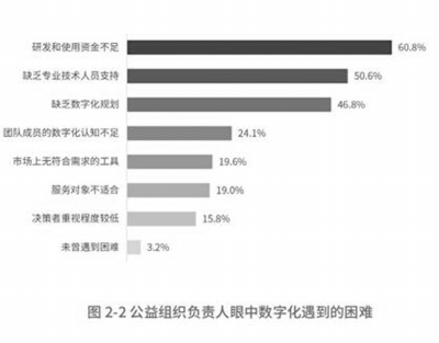 ■ 本報記者 皮磊 5月20日,2021中國互聯(lián)網(wǎng)公益峰會在重慶開幕,本次峰會以‘數(shù)字共建·公益流深’為主題。峰會上,騰訊基金會聯(lián)合騰訊研究院制作的《2021公益數(shù)字化研究報告》正式發(fā)布。該研究通過問卷調研了270家公益組織,覆蓋國內(nèi)28個省市以及14個公益服務領域,涉及不同規(guī)模和發(fā)展階段的機構,并開展深度訪談15場,致力于聽取并傳遞行業(yè)相關方的聲音,力求更準確地洞察公益數(shù)字化現(xiàn)狀和未來趨勢。 同時,報告通過梳理公益數(shù)字化的內(nèi)涵、‘四浪疊加’的歷程及驅動因素,展現(xiàn)數(shù)字社會下公益數(shù)字化的必由之路。調研顯示,公益數(shù)字化的發(fā)展“任重道遠”,面臨投入不足、人才不足、供給不足等資源瓶頸。 ‘研究報告指出,我們對公益數(shù)字化有著迫切的需求,但是起點還是很低。主要體現(xiàn)在三個方面的嚴重不足,就是投入不足、能力不足、工具和技術的供給不足?!v訊公司高級副總裁、騰訊公益慈善基金會理事長郭凱天對研究報告進行了解讀,‘其次,從實踐的角度,大家對公益數(shù)字化的方向、目標都有著基本的共識,數(shù)字化可以更好地服務于公益事業(yè)的幾個重要發(fā)展方面,那就是提高信任感、提升專業(yè)度、加快敏捷性?!?/p> ‘除此以外,在公益數(shù)字化方面,中國的公益組織已經(jīng)摸索了一些很有價值的嘗試。研究報告收錄分析了典型的有益的案例?!鶆P天說,比如愛佑的善款臺賬,真愛夢想的運營在地化、業(yè)務數(shù)據(jù)化,扶貧基金會愛家鄉(xiāng)評論區(qū)功能,千聊繁星公益計劃為公益機構提供技術、傳播、服務和資源落地四個方面的支持;還有騰訊支持開發(fā)者基于小程序開發(fā)更多的公益場景和公益項目等,都是有益的探索。 募資金額區(qū)間分布差異較小 從調研的公益組織基本情況來看,類型以社會服務機構為多,公募基金會次之,成立時間主要集中在2013年至2021年。 從調研公益組織的地域分布看,全國性機構占比例達35%;區(qū)域型機構(業(yè)務僅在單一、固定區(qū)域開展)中,排名靠前的省份是廣東、四川和湖南,貴州位列第15。在公益組織的運營領域方面,教育領域占比最高,其后是助殘、婦女兒童、扶貧與農(nóng)村發(fā)展。 從調研公益組織的年募資金額來看,募資金額區(qū)間的分布差異較小,募資小于20萬元與超過5000萬元的機構占比相對較高。從項目開展數(shù)量來看,絕大部分機構一年開展的項目數(shù)量集中在10個以內(nèi)。 報告顯示,從員工規(guī)模來看,全職員工為1至5人的機構相對較多,近八成的組織全職員工規(guī)模小于20人。近五成的公益組織兼職或志愿團隊小于30人,也有31%的組織擁有100人以上的兼職或志愿者團隊。 機構數(shù)字化投入有限 當前中國公益數(shù)字化發(fā)展緩慢,在公益組織運作的不同環(huán)節(jié)呈現(xiàn)差異化的數(shù)字化程度,不同規(guī)模的機構有不同的數(shù)字化發(fā)展訴求。雖然行業(yè)整體面臨數(shù)字化支持困難、市場規(guī)模局限、專業(yè)人才缺乏等挑戰(zhàn),但公益組織仍期待借助數(shù)字化實現(xiàn)機構可持續(xù)成長,推動行業(yè)生態(tài)建設。 調研發(fā)現(xiàn),盡管近七成公益組織負責人(法人/理事長/秘書長)迫切地想提升機構數(shù)字化程度,但其中46%的負責人表示仍未破解“如何做數(shù)字化”的難題,不知道如何將數(shù)字化建設融入機構發(fā)展規(guī)劃中。 專家表示,公益組織希望“把錢花在刀刃上”,而數(shù)字化帶來的成效并非一蹴而就。公益數(shù)字化尚未取得業(yè)內(nèi)廣泛驗證和推廣,不少公益組織處于觀望狀態(tài),在成本投入上有所保留。 調研顯示,不論募資規(guī)模多少,66%的公益組織投入數(shù)字化的比重在募資總額的1%以下,行業(yè)整體投入信心和力度不足。這種有想法但不投入的原因可以歸結為:人才、資金、產(chǎn)品等多方掣肘。 例如公益組織仍未找到“如何做數(shù)字化”的答案,對很多公益組織來說,數(shù)字化是“可選項”而非“必選項”、短期數(shù)字化成效不明顯,長期數(shù)字化投入大、持續(xù)難,使得多數(shù)組織和資方保持觀望態(tài)度、推進行動遲緩。 從資源限制來看,面臨“資金、技術、人才”三重壁壘。公益組織數(shù)字化程度不是政府、企業(yè)、基金會等資方關注和扶持的重點,缺乏利好支持和積極信號。 另一方面,傳播和籌款作為公益數(shù)字化的熱點,歷經(jīng)數(shù)年發(fā)展,接受度和普及度較高。調研顯示,85%的公益組織已實現(xiàn)互聯(lián)網(wǎng)平臺籌款,88%的組織已開通社交媒體賬號。 然而面向公益服務環(huán)節(jié)(例如需求管理、執(zhí)行、評估等)技術產(chǎn)品卻因服務場景差異大、個性化程度高,需要定制化開發(fā)而進展緩慢,仍有近五成公益組織期待利用數(shù)字化進行服務創(chuàng)新,在需求識別、執(zhí)行與評估等環(huán)節(jié)優(yōu)化服務鏈路。 由于使用平臺不統(tǒng)一,公益組織的運營數(shù)據(jù)往往分散且留存標準維度不統(tǒng)一,導致組織內(nèi)部數(shù)據(jù)連接不暢。調研顯示,40%的公益組織沒有統(tǒng)一的數(shù)據(jù)收集和存儲標準,87%僅能實現(xiàn)部分數(shù)據(jù)的管理。而服務對象信息的敏感
