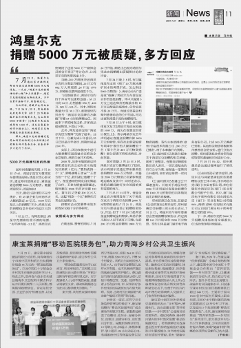 捐贈5000萬元被質(zhì)疑,多方回應(yīng)