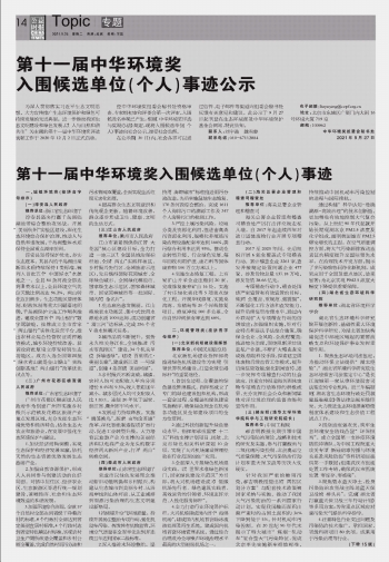 第十一屆中華環(huán)境獎(jiǎng)入圍候選單位(個(gè)人)事跡
