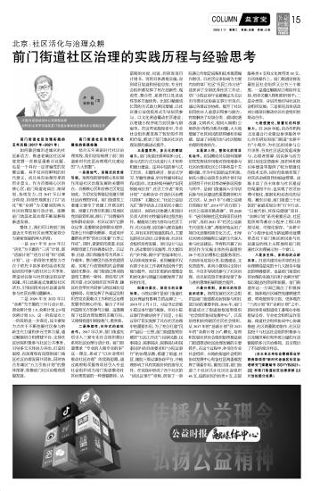 前門街道社區(qū)治理的實踐歷程與經(jīng)驗思考