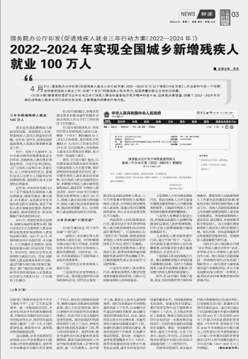 2022-2024年實現(xiàn)全國城鄉(xiāng)新增殘疾人就業(yè)100萬人