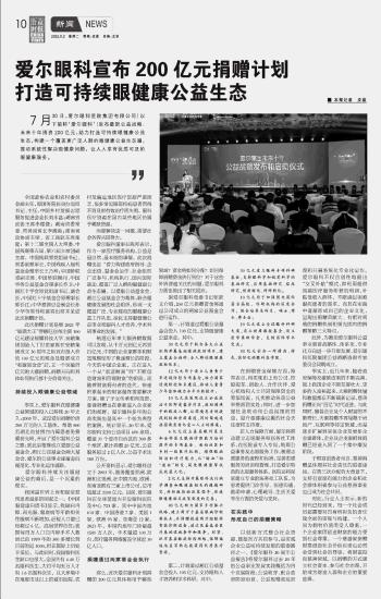 愛爾眼科宣布200億元捐贈計劃 打造可持續(xù)眼健康公益生態(tài)