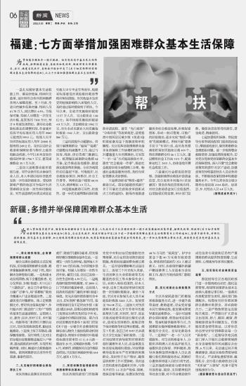 福建:七方面舉措加強(qiáng)困難群眾基本生活保障
