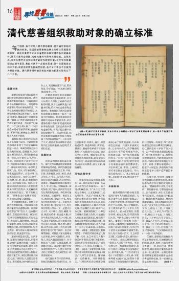 清代慈善組織救助對(duì)象的確立標(biāo)準(zhǔn)