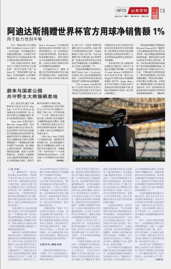 阿迪達(dá)斯捐贈(zèng)世界杯官方用球凈銷(xiāo)售額1%