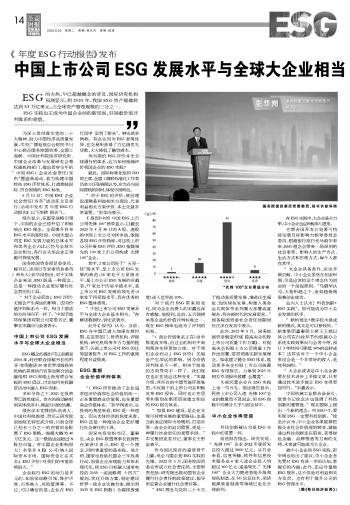 中國上市公司ESG發(fā)展水平與全球大企業(yè)相當(dāng)