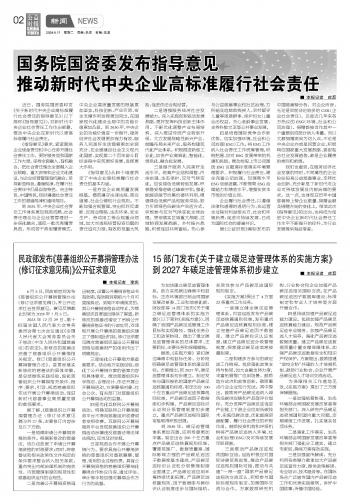 國(guó)務(wù)院國(guó)資委發(fā)布指導(dǎo)意見推動(dòng)新時(shí)代中央企業(yè)高標(biāo)準(zhǔn)履行社會(huì)責(zé)任