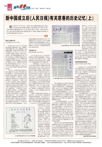 新中國(guó)成立后《人民日?qǐng)?bào)》有關(guān)慈善的歷史記憶(上)