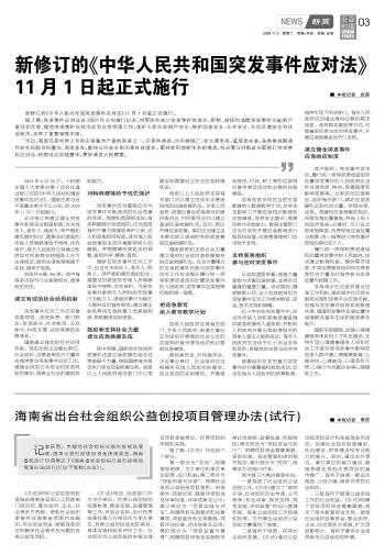 新修訂的《中華人民共和國(guó)突發(fā)事件應(yīng)對(duì)法》11月1日起正式施行