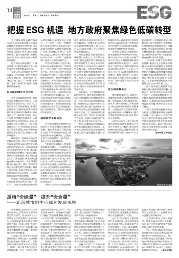把握ESG機遇 地方政府聚焦綠色低碳轉(zhuǎn)型