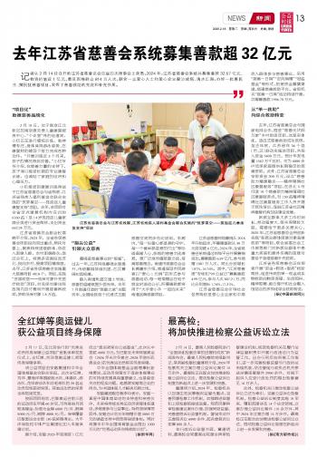 去年江蘇省慈善會系統(tǒng)募集善款超32億元