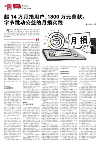 超14萬月捐用戶、1800萬元善款:字節(jié)跳動公益的月捐實踐