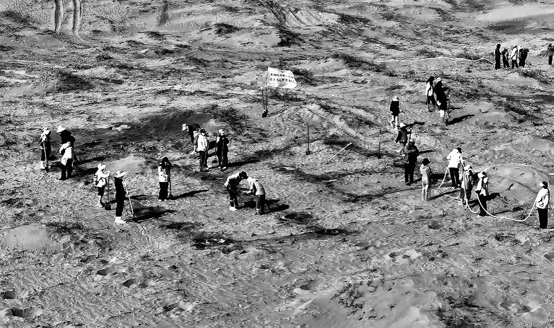 甘肅省民勤縣涌入一群年輕人。 民勤位于河西走廊東北部、石羊河流域下游,東西北三面被騰格里和巴丹吉林兩大沙漠包圍,是全國(guó)荒漠化、沙化最嚴(yán)重的縣區(qū)之一。 長(zhǎng)期以來,民勤人在長(zhǎng)達(dá)408公里的風(fēng)沙線上種樹壓沙,建成300多公里的防護(hù)林帶。2014年至2019年,該縣荒漠化面 積 占 比 從 90.34%下 降 到88.18%。 如今,一句“歡迎到民勤種樹”,一群來自全國(guó)各地的志愿者,讓民勤被更多人看見。 種樹 早春,微風(fēng),氣溫回升,土壤解凍,草木已過休眠期,正是種樹的好時(shí)節(jié)。 在民勤縣收成鎮(zhèn)興隆村東南方向的騰格里沙漠邊緣,記者看到打坑車在沙地里走走停停,留下整齊的圓坑。志愿者們跟著打坑車上前補(bǔ)挖,一個(gè)個(gè)長(zhǎng)4米、寬2米的方格逐漸成型。 一個(gè)方格,就是一棵成年梭梭能固沙的大致范圍。40厘米左右深的種植坑挖好后,梭梭、花棒、檸條等抗風(fēng)沙的苗木被栽下,緊貼坑壁以防倒伏,接著是澆水、回填、壓土……一天下來,又有100余畝沙地里“長(zhǎng)”出了樹苗,超過10個(gè)標(biāo)準(zhǔn)足球場(chǎng)的面積。 這是600多名志愿者一天的共同成果。他們來自全國(guó)各地,不少是90后、00后,有的已不是第一次來。 一群年輕人,為何扎進(jìn)沙漠種樹? 2024年春天播出的一檔綜藝節(jié)目讓民勤脆弱的生態(tài)環(huán)境和艱苦的治沙工作受到更多關(guān)注,陸續(xù)有人自發(fā)前來。同年11月,一名甘肅小伙喊出“歡迎到民勤種樹”。視頻在社交媒體上熱傳,網(wǎng)友紛紛留言響應(yīng)。“我們不是來追星的,這里沒有星,我們是來做事的?!眮碜蕴K州的白春瑤說,去年第一次來民勤,確實(shí)是受偶像影響,但自從踏上這片土地,看到風(fēng)沙里的梭梭,她想的只是怎么把種樹這件事做成。 今年再次來到這里,白春瑤成了小組長(zhǎng),負(fù)責(zé)為幾十人分工、講解要點(diǎn)。種樹期間,志愿者們有的住在夜間氣溫零下的帳篷、板房里,有的每天乘車從40公里外的縣城趕到沙漠,再扛著鐵鍬步行半小時(shí)前往種植區(qū),在日曬下挖坑、插苗、澆水?!按蠹叶己苷J(rèn)真地在做這件事?!痹S多細(xì)節(jié)讓白春瑤覺得“這事兒能成”:“比如種樹的順序,去年是由近到遠(yuǎn)種,我當(dāng)時(shí)就覺得,往遠(yuǎn)處走的時(shí)候,很容易踩到已經(jīng)種好的樹,沒想到今年真的改了?!?br> 治沙 60厘米左右的梭梭樹苗,成年后能長(zhǎng)到3米以上,根系深入地下,牢牢鎖住沙土。 民勤位于騰格里和巴丹吉林兩大沙漠的夾縫之中,處于國(guó)家生態(tài)安全戰(zhàn)略格局中的“北方防沙帶”,是全國(guó)荒漠化、沙化最嚴(yán)重的縣區(qū)之一,當(dāng)?shù)厮赜小笆鼐派?,非灌不殖”之說。 一部民勤志,半部治沙史。在這次的“種樹熱”背后,民勤人堅(jiān)持種樹壓沙已有多年,石述柱、范玲花等老一輩治沙人的故事廣為流傳。 網(wǎng)絡(luò)上民勤種樹的視頻下,常有人留言問“怎么種,聯(lián)系誰(shuí)”?;貜?fù)中,“小仲哥”和“馬哥”被頻繁提起?!靶≈俑纭泵兄禀?,民勤縣西渠鎮(zhèn)人,是一名95后。和許多民勤人一樣,仲麟的童年記憶里總有漫天黃沙以及忙著種樹、制作擋風(fēng)墻的長(zhǎng)輩,“印象最深的一次,風(fēng)沙過境,天都是黑的。” 大學(xué)時(shí),仲麟嘗試在老家種下500棵梭梭,但由于經(jīng)驗(yàn)不足,這批樹最終成活的寥寥可數(shù)?!皼]有想的那么簡(jiǎn)單。”畢業(yè)前夕,仲麟再次回到民勤,作為志愿者參與春種。記錄數(shù)據(jù)、反復(fù)試驗(yàn),仲麟逐漸摸索出一套有效的種樹方法——樹苗種植深度在40厘米左右,順風(fēng)方向栽植。這樣種下的梭梭成活率能達(dá)到80%。 2023年,仲麟和十幾名村民在興隆村種下了300畝公益林,而后又將這里發(fā)展為仲麟生態(tài)公益林基地。2024年,5000多名志愿者在此參與種樹。 在距興隆村百余公里的四方墩生態(tài)林基地,記者見到了有相似經(jīng)歷的“馬哥”馬俊河。 80后馬俊河也是土生土長(zhǎng)的民勤人。2006年,在外工作的馬俊河聽說民勤綠洲未來可能會(huì)被兩大沙漠侵吞,便回到家鄉(xiāng),發(fā)起“拯救民勤志愿者綠洲行動(dòng)”。 2007年以來,馬俊河組織志愿者在民勤種樹,開展生態(tài)治理,讓8萬畝沙地披上了綠裝?!耙郧胺N下的第一批梭梭已經(jīng)有5米高了?!?br> “綠洲內(nèi)部道路沿線、村莊周邊的零星沙地治理,交給公益機(jī)構(gòu)和當(dāng)?shù)馗刹咳罕??!泵袂诳h林草局工作人員介紹,多方努力下,民勤已經(jīng)形成了重點(diǎn)工程和社會(huì)力量結(jié)合的治沙格局,“青土湖、龍王廟、西大河等重點(diǎn)風(fēng)沙口治理主要依托國(guó)家‘三北’工程。” 近年來,民勤“沙進(jìn)人退”的態(tài)勢(shì)得到遏制,408公里的風(fēng)沙線上建成了300多公里的防護(hù)林帶。干涸了50多年的青土湖也逐漸恢復(fù)水域面積,2024年達(dá)到27.65平方公里。 可持續(xù) “多的時(shí)候,每天有七八百人來到基地?!?br> 截至今年5月中旬,仲麟發(fā)起的志愿種樹活動(dòng)已經(jīng)有2.7萬人參與。馬俊河負(fù)責(zé)的四方墩生態(tài)林基地也已接待8000余人。 民勤如何接住這巨大的善意? “至少要讓大家吃上一口熱鍋飯?!敝禀胝f,沙漠環(huán)境惡劣,風(fēng)沙說來就來,搭建基地是為了能讓