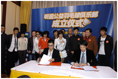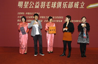 10月28日,囊括眾多演藝明星的明星羽毛球隊正式改名為公益明星羽毛球俱樂部,并在釣魚臺舉行了隆重的成立儀式。明星羽毛球隊自2003年成立以來,已發(fā)展到近百人的陣容。中國社會工作協(xié)會副會長、《公益時報》社社長劉京擔(dān)任主席、劉曉慶擔(dān)任執(zhí)行主席。